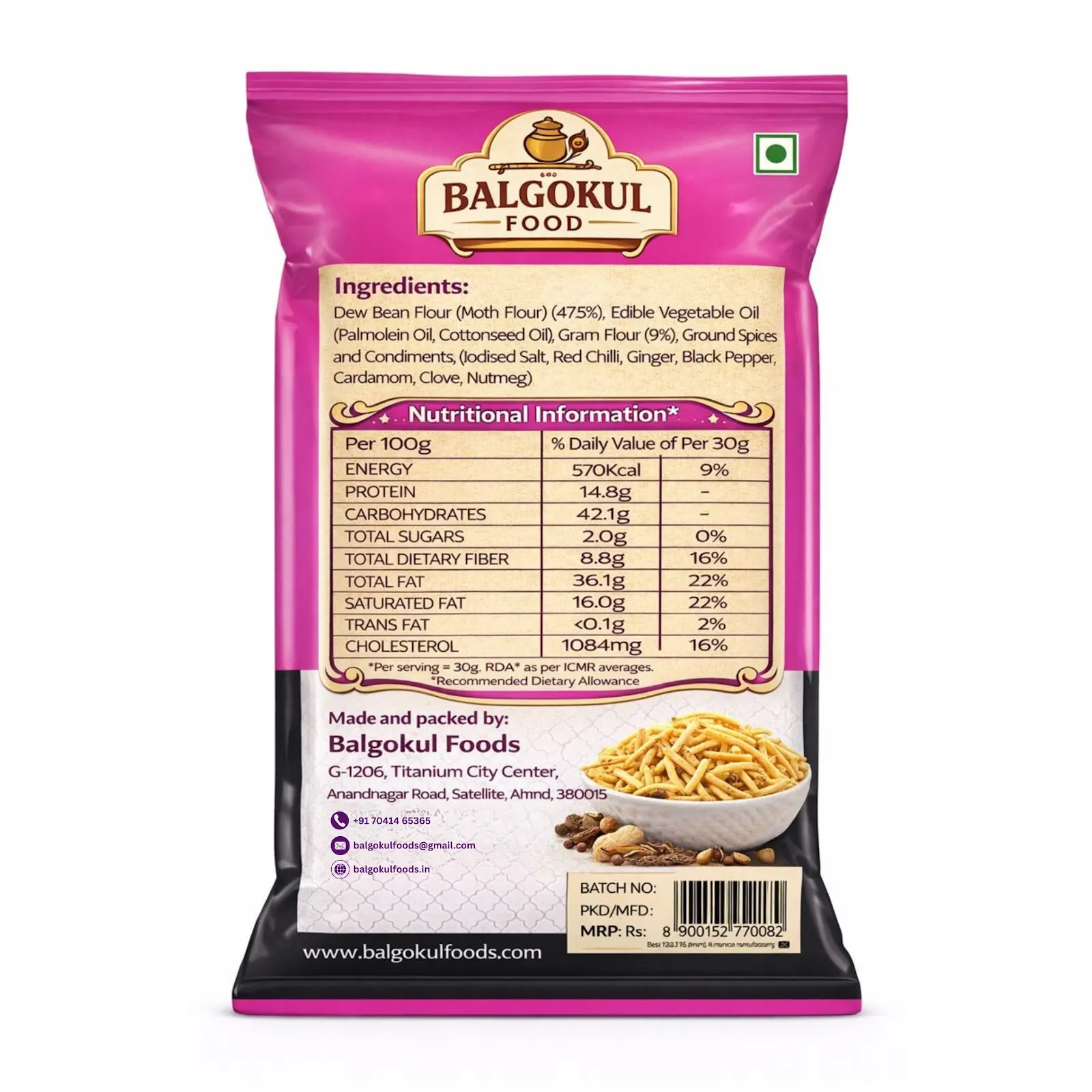 Prepared under hygienic conditions and 100% vegetarian, this product reflects BalGokul Foods’ commitment to quality, consistency, and trusted taste. Perfect for tea-time snacking, festive occasions, or as a crunchy topping for chaat and farsan mixes.