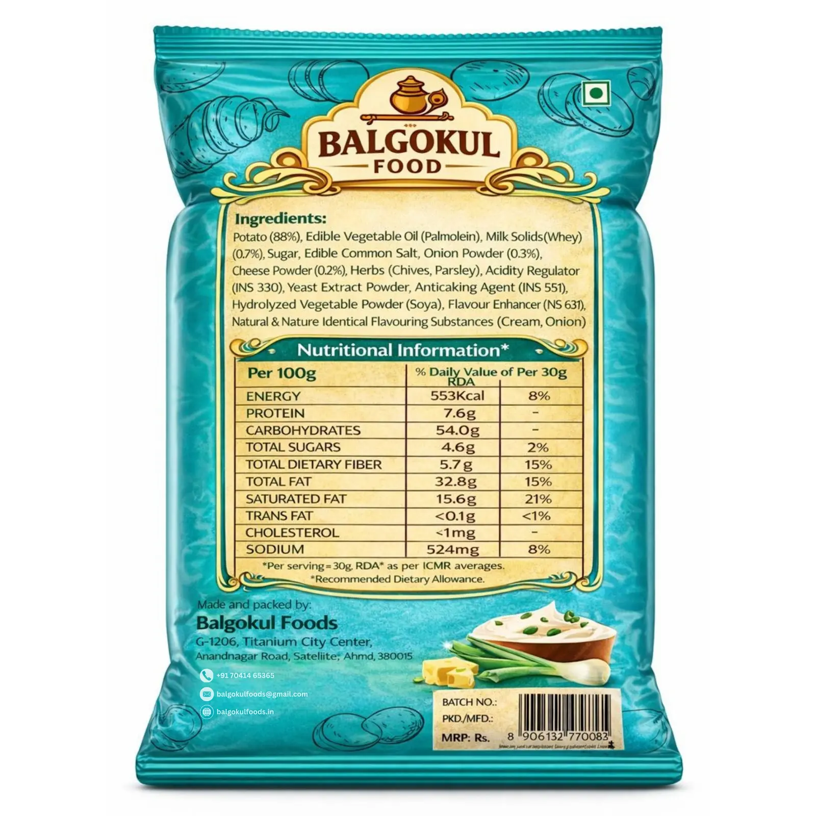 Prepared under hygienic conditions and 100% vegetarian, this product reflects BalGokul Foods’ commitment to quality, consistency, and trusted taste. Ideal for tea-time, parties, movie snacking, or everyday munching, it’s a classic favourite loved by all age groups.