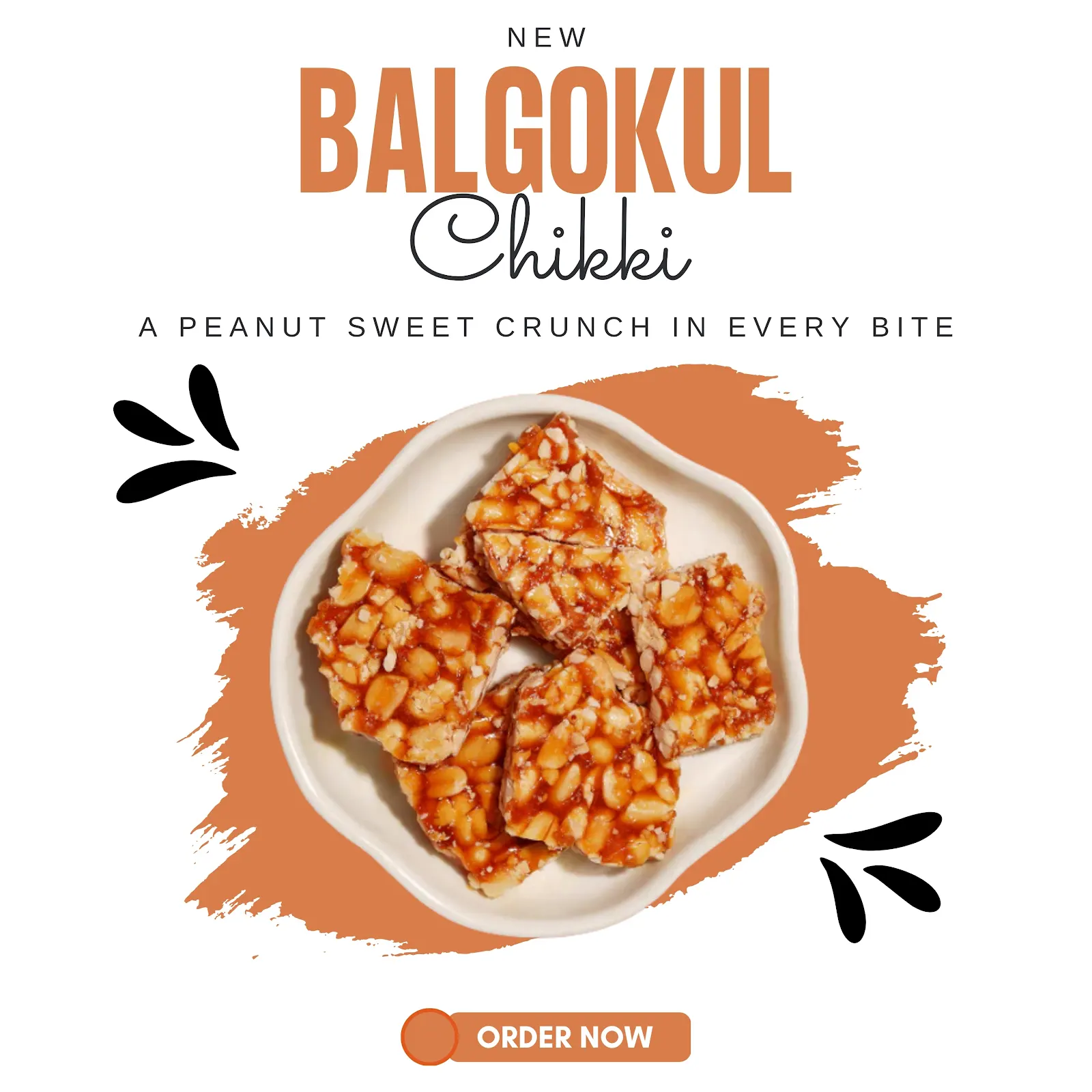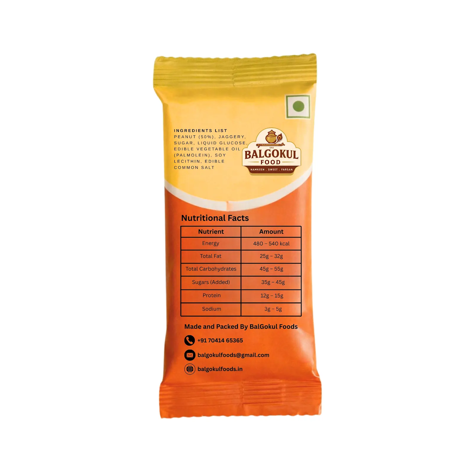 BalGokul Foods Peanut Chikki is a classic Indian sweet snack prepared using high-quality peanuts and natural jaggery. Carefully roasted peanuts are bound with jaggery syrup to deliver the perfect crunch and authentic taste. This wholesome snack is rich in energy and protein, making it ideal for quick hunger cravings, travel snacks, and everyday munching. Prepared hygienically and packed fresh to retain taste and texture.